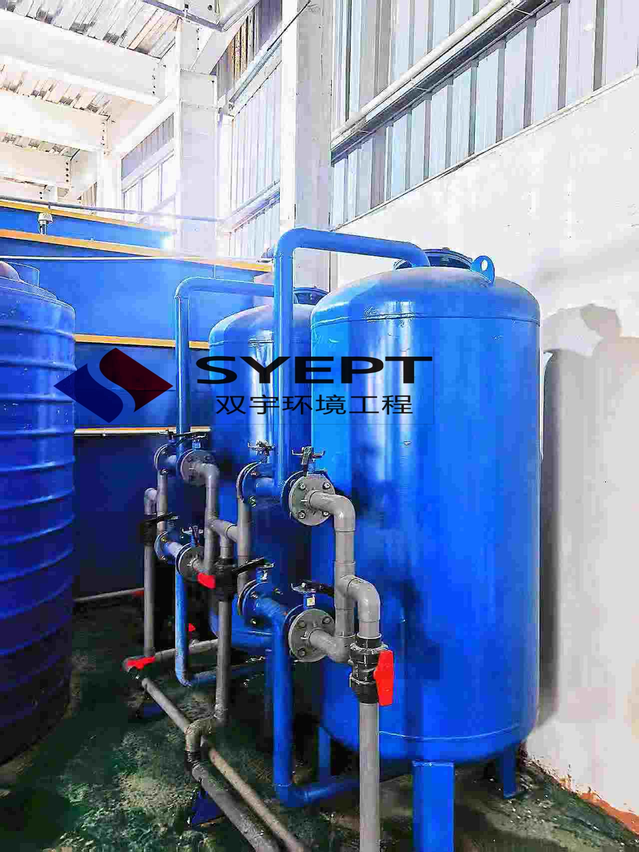前处理废水主要为钝化清洗水,脱脂清水废水、磷化清洗废水,以及和一些其他的清洗废水,钝化废水中含有三价铬离子,其他的清洗水为综合性的废水,在排水的时候,需要将钝化清洗水和脱脂磷化的排水分开,综合水进入综合污水调节池,钝化清洗水进入钝化污水调节池,钝化水需进行破铬处理,破铬的最主要的破铬剂为亚硫酸氢钠药剂,将钝化水的PH值调整到2.8-3.0,再加入亚硫酸氢钠溶液,直至废水中有绿色的细小颗粒出现后再排到综合污水调节池内。污水调节池内的水用提升泵提升到一级三级反应池中的一级反应池中,添加氧化剂药剂,再自流到二级反应池中,同时添加助凝剂,再自流到三级反应池中,添加絮凝药剂,再自流到一级综合沉淀池中,通过上清液自流到二级反应池中的一级反应池中,补充助凝剂,依次和一级反应池的药剂,再自流到二级综合沉淀池中进行沉淀,后自流到PH回调池中,通过加回调剂进行回调。在回调后通过增压泵将废水进行过滤,将一些细小的SS和一些其他物质进行过滤去除,后进入清水回用外排池,部分进行回用,多余部分进行外排,排入市政官网中;一级和二级沉淀池的污泥自压进入污泥浓缩池中,后用气动隔膜泵打入箱式板框压力机中进行固液分离,液体通过管道进入综合污水调节池,固废则通过收集后交给有资质的单位回收处理。
